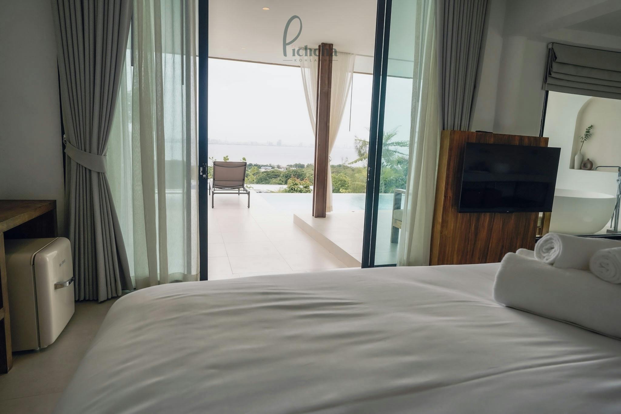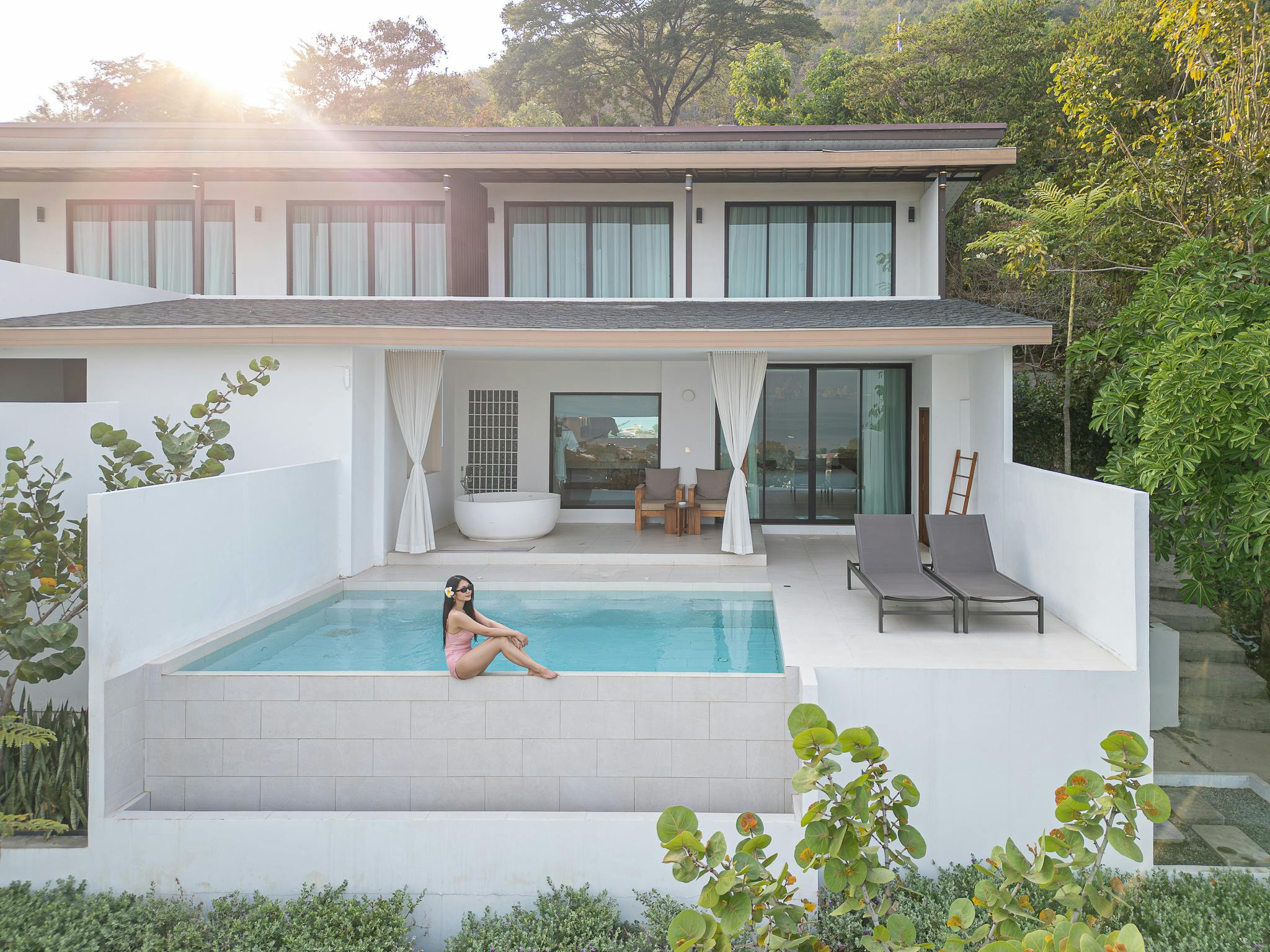 Panorama Sea View (area 87 sq m.) Private swimming pool. (sea view) MOANA (โม-อา-นา) แปลว่า มหาสมุทร วิวทะเลพาโนรามา กว้างไกลสุดตา ให้ความรู้สึกคล้ายมหาสมุทร คุณจะตื่นตากับวิวตรงหน้าแบบไม่มีเบื่อ ห้องโม-อา-นา เป็นห้องขนาด 87 ตร.ม. พร้อมด้วยอ่างอาบน้ำหินขนาดใหญ่ ชานระเบียงห้องพักที่กว้างขวาง พร้อมด้วยสระส่วนตัวภายในห้อง ทำให้คุณสามารถใช้เวลาได้ทั้งวันภายในห้องที่วิเศษนี้ พร้อมด้วยเตียง 7 ฟุต California King bed ให้การนอนหลับพักผ่อนของคุณพิเศษมากกว่าเดิม
