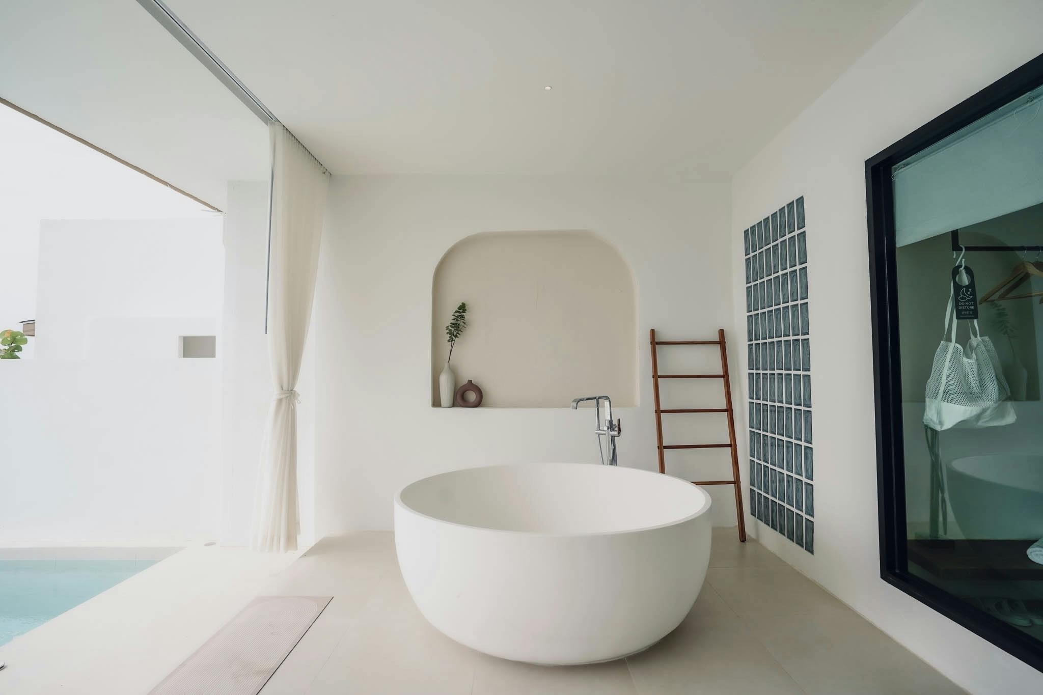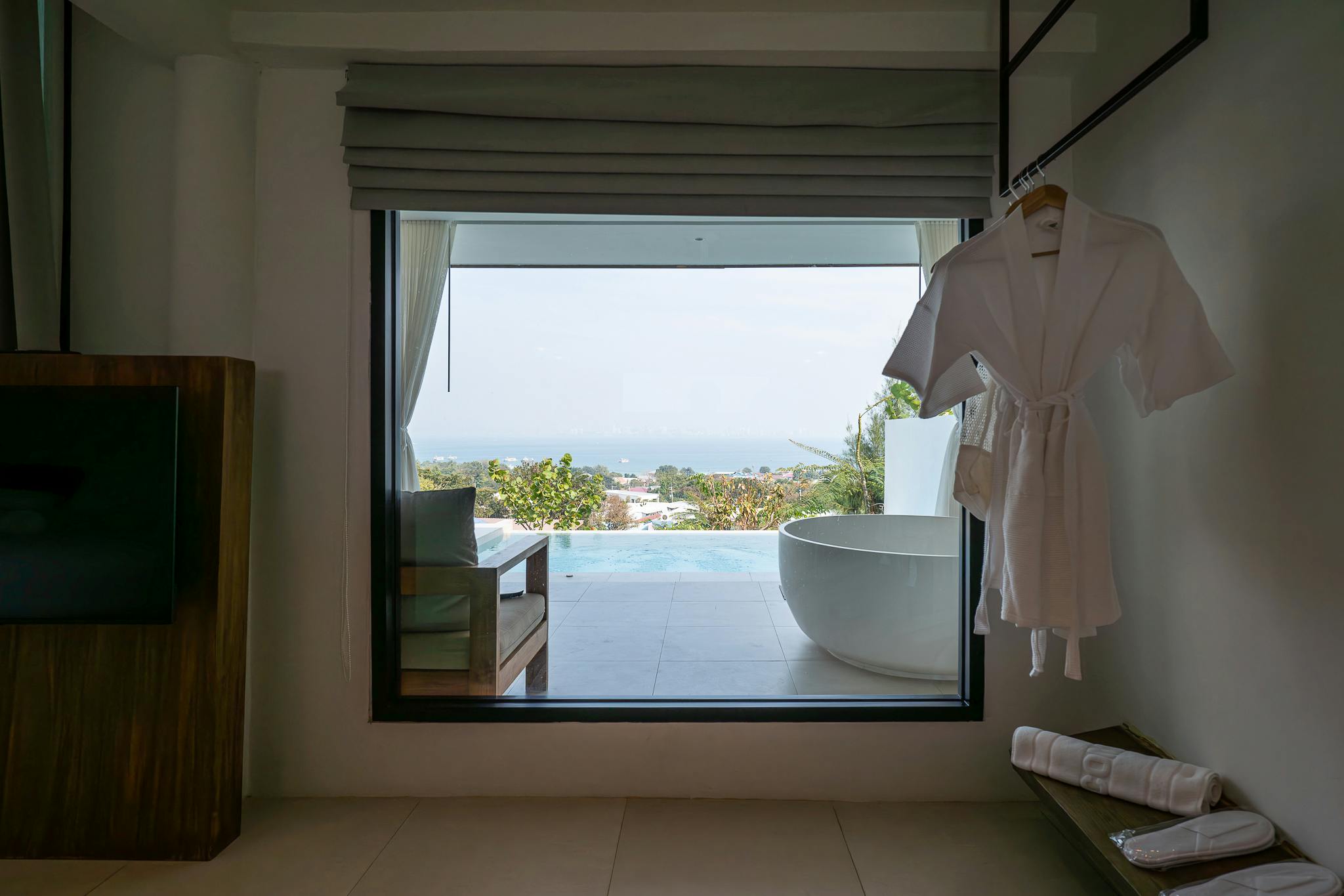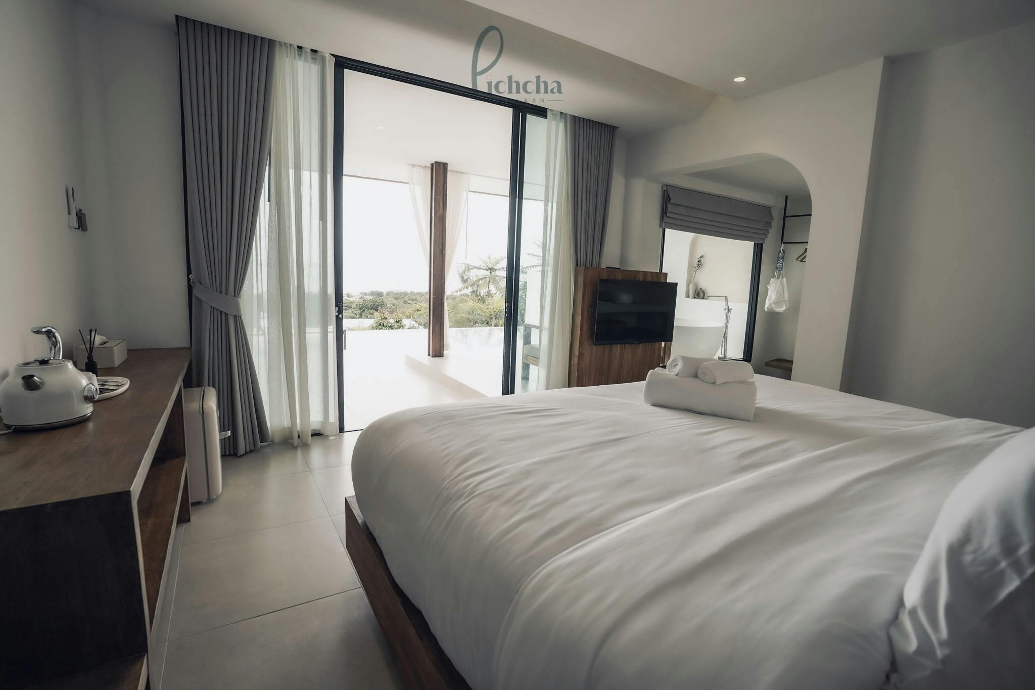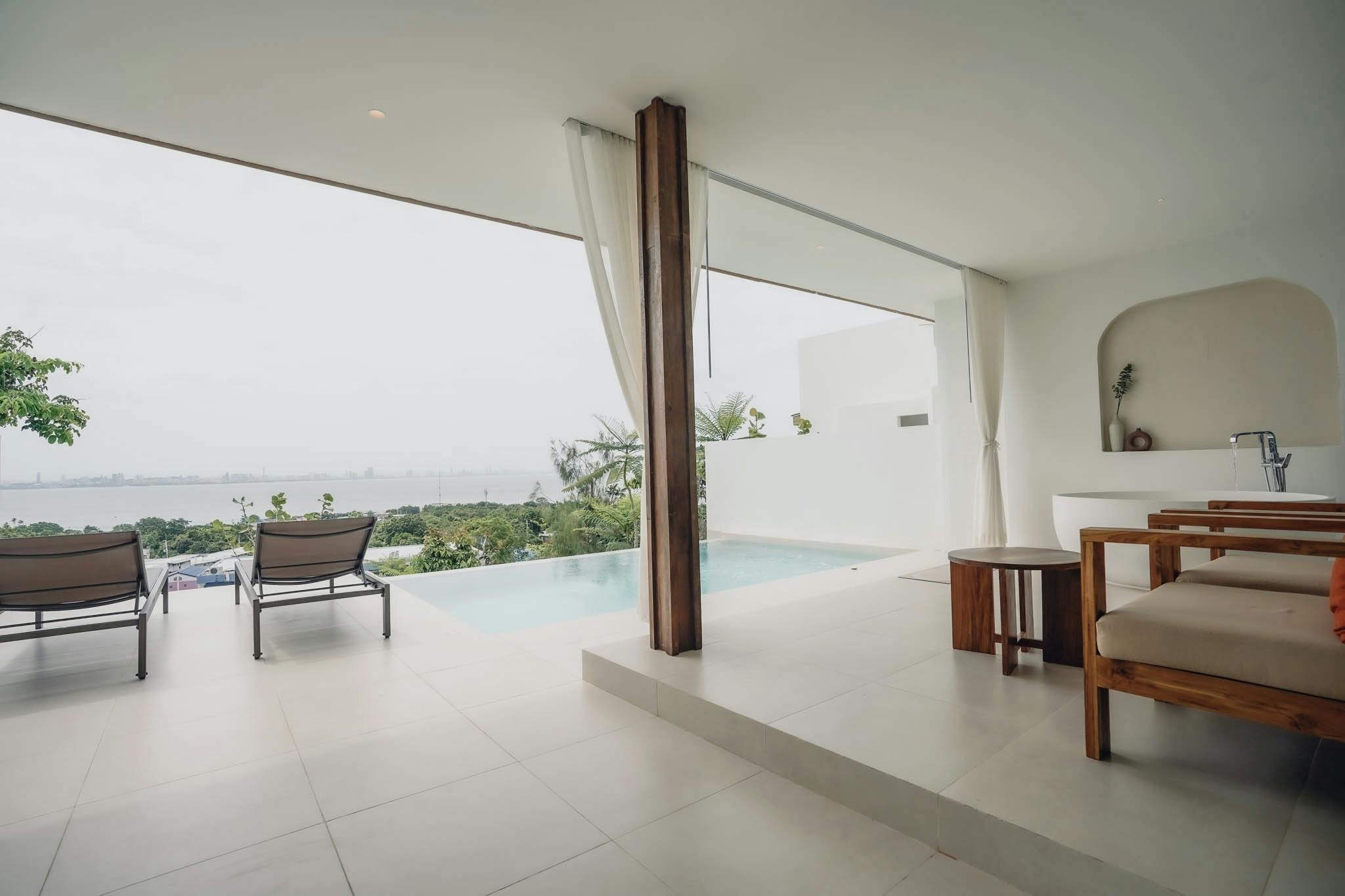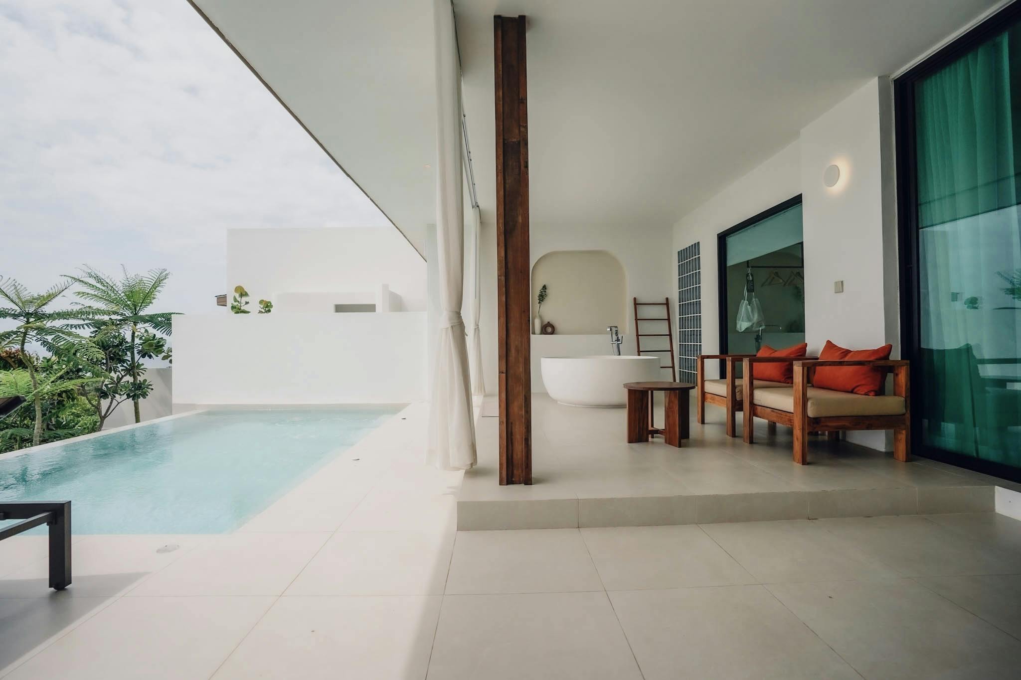 Panorama Sea View (area 87 sq m.) Private swimming pool. (sea view) MOANA (Mo-a-na) means 'ocean'. The panoramic sea view stretches as far as the eye can see, giving a feeling similar to being on the ocean. You will be amazed by the view in front of you without ever getting tired of it. The Moana room is 87 sq m in size, featuring a large stone bathtub, a spacious balcony terrace, and a private pool within the room, allowing you to spend the entire day in this wonderful accommodation. With a 7-foot California King bed, your sleep experience becomes even more special.